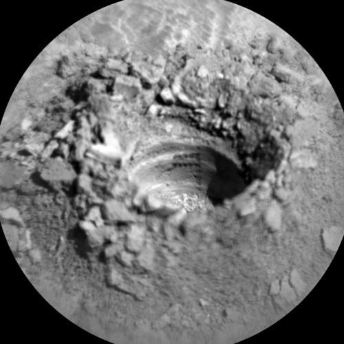 Reports Roger Wiens, Geochemist at Los Alamos National Laboratory in New Mexico: “Curiosity has been at this same location for all of August and September, which included a number of days of waiting for Mars to pass behind the Sun (‘conjunction’), drilling two holes, and processing the samples.”
