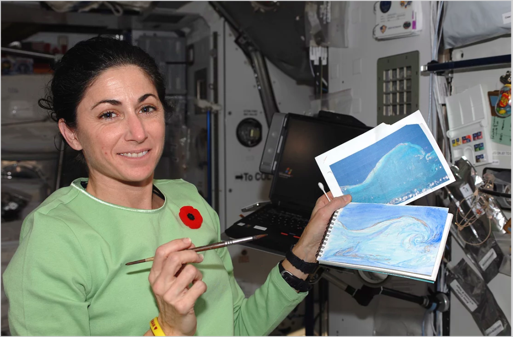 I grew up doing artsy crafty things, and as an adult—if I could find spare time—I would paint, do some woodworking, or tinker in the garden. Thankfully, before my first spaceflight, my crew support representative and friend Maryjane Anderson encouraged me to think about how I might spend some of my spare time while living for months in space. Thanks to her, I packed a small watercolor kit, and became the first person to paint a watercolor in space.