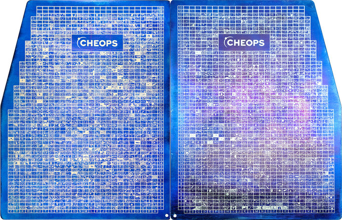 While the satellite was being assembled earlier this year, a team at the Bern University of Applied Sciences in Burgdorf, Switzerland miniaturized the drawings and engraved them onto two titanium plates. Each plaque measures nearly 18 cm across and 24 cm high.
