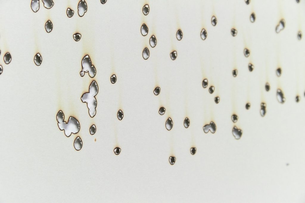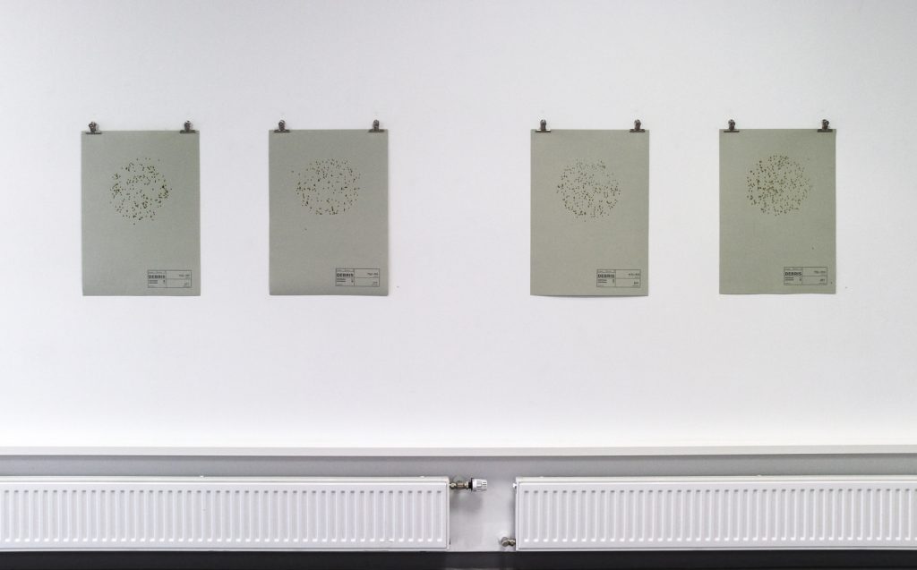 DEBRIS manifests all catalogued pieces of debris in chronological order as tiny, burned-in marks on cardboard. The cardboard is exchanged when the visualisation of one decade of space debris is completed.