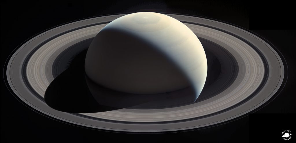This view looks toward Saturn from about 31 degrees above the ring plane. The image was taken with the Cassini spacecraft wide-angle camera on Jan. 22, 2017 using a spectral filter which preferentially admits wavelengths of near-infrared light centered at 939 nanometers.