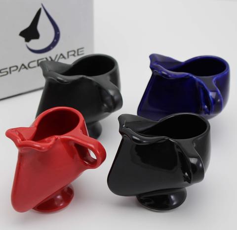 A one of a kind porcelain Space Cup that comes in a variety of colors. It’s food safe, durable, and true to the original space design minus a small base for operating in earthly gravity. The functional design is derived from fluid physics, yielding a unique, even artistic piece.