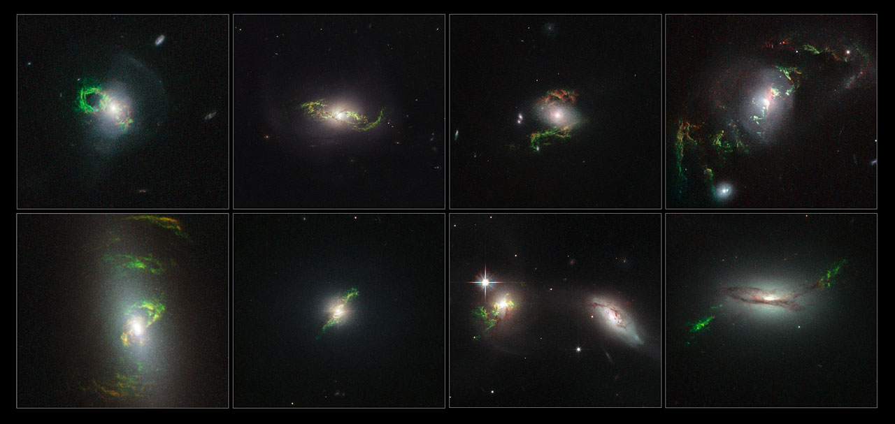 Those featured here [see above matrix of images] are (from left to right on top row) the Teacup (more formally known as 2MASX J14302986+1339117), NGC 5972, 2MASX J15100402+0740370 and UGC 7342, and (from left to right on bottom row) NGC 5252, Mrk 1498, UGC 11185 and 2MASX J22014163+115123