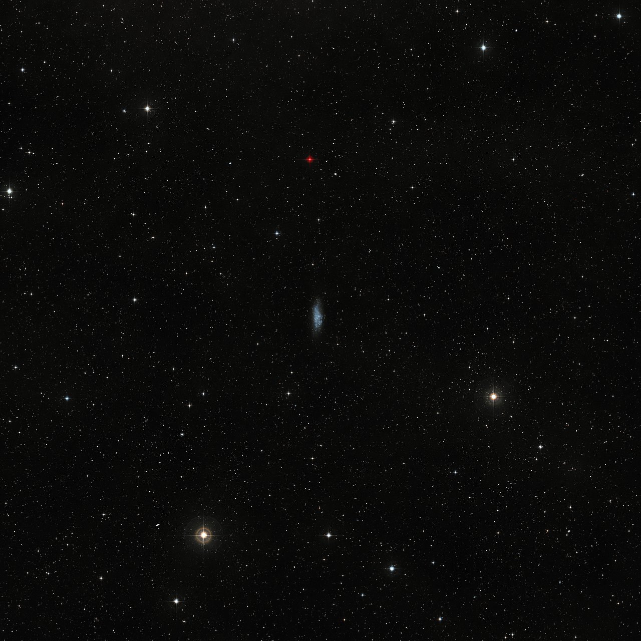 This small galaxy features an extended halo of very dim red stars, which stretches out into the inky blackness of the surrounding space. This reddish hue is indicative of advanced stellar age. It is likely that the halo dates back to the original formation of the galaxy itself, helpfully offering clues about the mechanisms that spawned the very first galaxies.