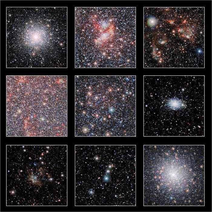 The Small Magellanic Cloud galaxy is a striking feature of the southern sky even to the unaided eye. But visible-light telescopes cannot get a really clear view of what is in the galaxy because of obscuring clouds of interstellar dust. VISTA’s infrared capabilities have now allowed astronomers to see the myriad of stars in this neighbouring galaxy much more clearly than ever before. The result is this record-breaking image — the biggest infrared image ever taken of the Small Magellanic Cloud — with the whole frame filled with millions of stars.