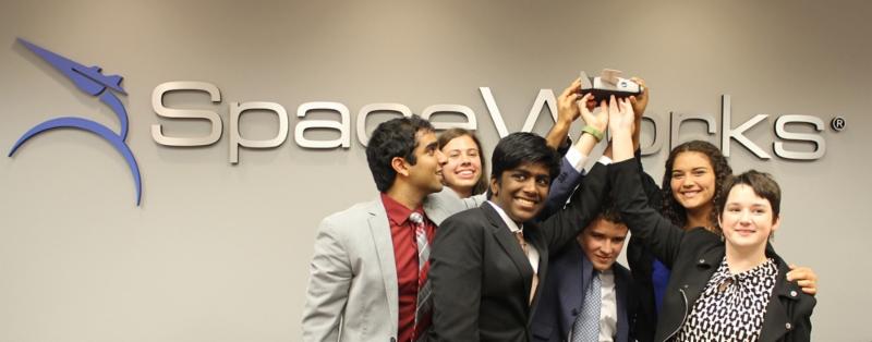 (Washington, DC – June 28, 2017) SpaceWorks Enterprises, Inc. hosted a summer program specifically geared for high school students, challenging them to design the NSS Enterprise spacecraft envisioned by Enterprise In Space (EIS), a non-profit program of the National Space Society (NSS). The students had access to numerous resources, including the expertise of SpaceWorks and EIS staff. After completion of their project, the team presented their proposed design, budget, and methods of atmospheric re-entry to SpaceWorks, EIS, teachers, and parents.