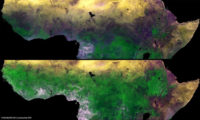Images from the European Proba-V earth observation smallsat shows changes in African during the rainy season: