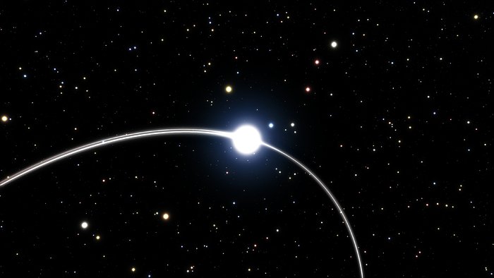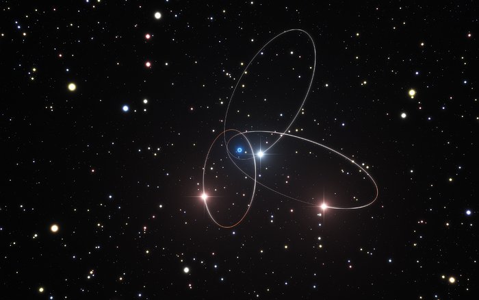 This artist’s impression video shows the orbits of three of the stars very close to the supermassive black hole at the centre of the Milky Way. Analysis of data from ESO’s Very Large Telescope and other telescopes suggests that the orbits of these stars show the subtle effects predicted by Einstein’s general theory of relativity. There are hints that the orbit of the star called S2 is deviating slightly from the path calculated using classical physics.