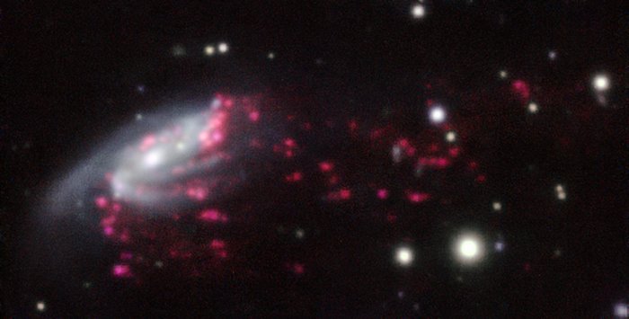 “This strong link between ram pressure stripping and active black holes was not predicted and has never been reported before,” said team leader Bianca Poggianti from the INAF-Astronomical Observatory of Padova in Italy. “It seems that the central black hole is being fed because some of the gas, rather than being removed, reaches the galaxy centre.” [4]