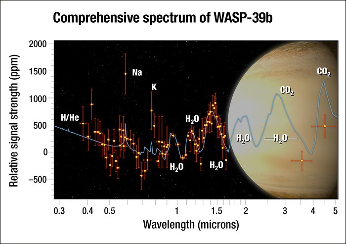 An international team of scientists has used the NASA/ESA Hubble Space Telescope to study the atmosphere of the hot exoplanet WASP-39b. By combining this new data with older data they created the most complete study yet of an exoplanet atmosphere. The atmospheric composition of WASP-39b hints that the formation processes of exoplanets can be very different from those of our own Solar System giants.