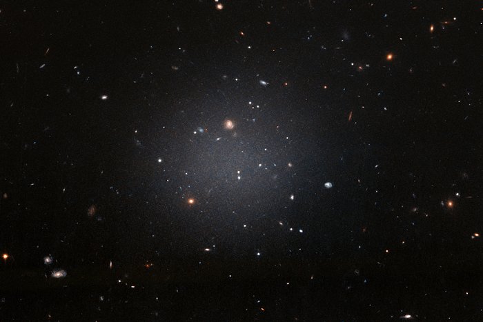 Astronomers using Hubble and several ground-based observatories have found a unique astronomical object: a galaxy that appears to contain almost no dark matter [1]. Hubble helped to accurately confirm the distance of NGC 1052-DF2 to be 65 million light-years and determined its size and brightness. Based on these data the team discovered that NGC 1052-DF2 larger than the Milky Way, but contains about 250 times fewer stars, leading it to be classified as an ultra diffuse galaxy.