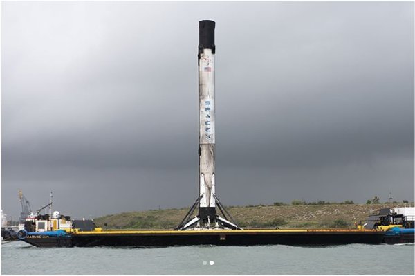 And here is the booster coming into Port Canaveral for inspection and eventual re-flight: