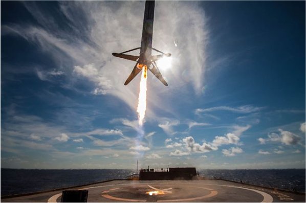 A view of the Block 5 first stage booster coming down for a landing after launching Bangladesh’s first satellite on May 11th:
