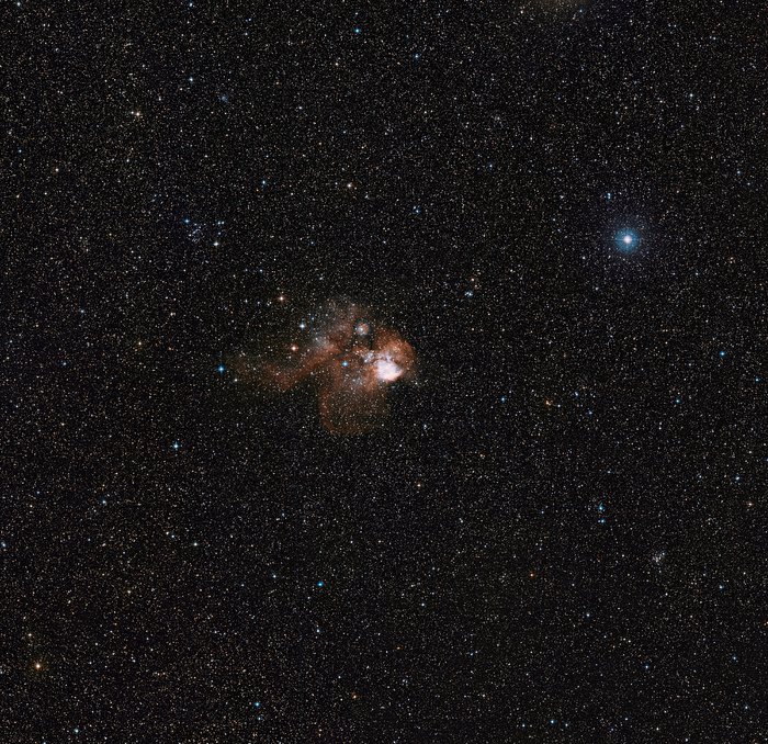 Puppis is one of three nautically named constellations that sail the southern skies, and which used to make up the single, giant Argo Navis constellation, named after the ship of the mythical Jason and the Argonauts. Argo Navis has since been divided into three: Carina (the keel), Vela (the sails) and Puppis, where this nebula finds its home. Whilst a heroic figure, Jason is most famous for his theft of the golden fleece, so NGC 2467 rests not only in the midst of a vast celestial ship, but amongst thieves — an appropriate abode for this piratical nebula.