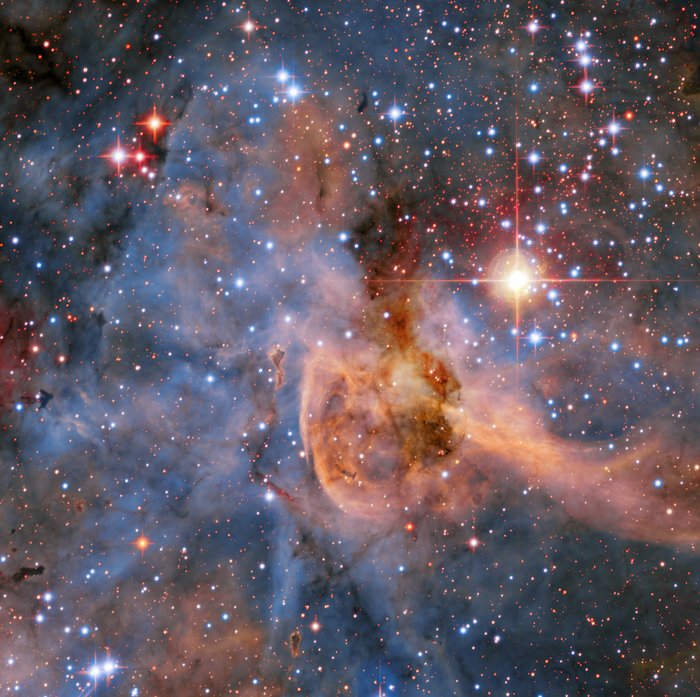 This first light image from the Europa telescope at the SPECULOOS Southern Observatory (SSO) shows the heart of the Carina Nebula. The SSO is installed at ESO’s Paranal Observatory in the vast Atacama Desert, Chile, and consists of four 1-metre planet-hunting telescopes. The project’s telescopes are named after Jupiter’s Galilean moons, and are neighbours of ESO’s Very Large Telescope and VISTA. SPECULOOS will focus on detecting Earth-sized planets orbiting nearby ultra-cool stars and brown dwarfs. [Via Universe Today and Carnival of Space.]