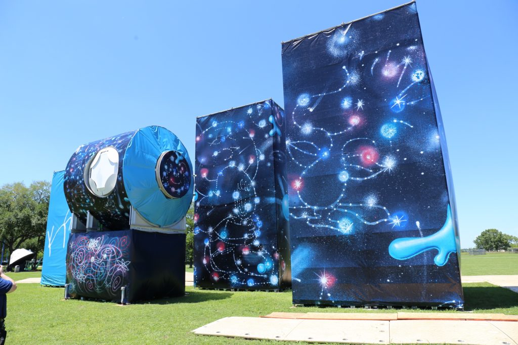 At the entrance of Space Center Houston, the outdoor art installation features a full-scale International Space Station Training Module wrapped in an original Charlie Brown and Snoopy Motif by artist Kenny Scharf. Entitled “The Heavens and the Earth,” the art installation honors NASA’s 50th Anniversary celebrations of Apollo 10. NASA and Peanuts have a longstanding partnership. NASA named the Apollo 10 command and lunar modules “Charlie Brown” and “Snoopy,” respectively. (Apollo 10, which orbited the moon, served as a dress rehearsal for the historic Apollo 11 moon landing in July 1969.)