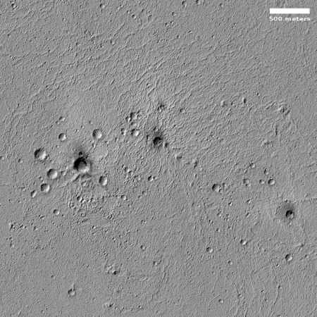 - Darkened craters on Mars