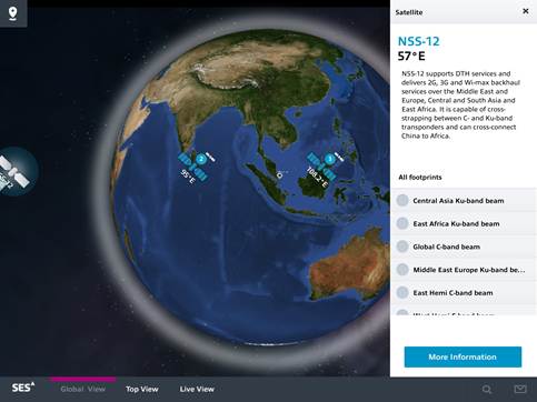SES Astrium points me to their iPhone App, which provides the location of their many satellites: SES Satellites for iPad on the iTunes App Store