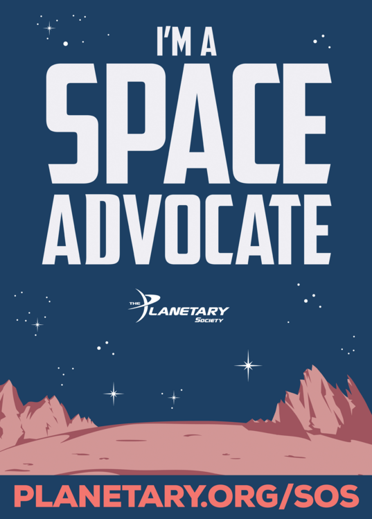 The Planetary Society is now selling the I’m a Space Advocate Poster at Zazzle.com with a portion of the sales going to support the society: New “I’m a Space Advocate” Poster – The Planetary Society