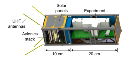 SpooQy-1 cut-away model shows the avionics and location of the SPEQS-2 polarization-entangled photon-pair experiment. Credits: SpooQy Lab
