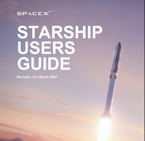 ** SpaceX released the Starship Users Guide V1 (pdf). At 6 pages, it is really just an initial outline of a UG but it is another step in convincing the world that the Starship is going to become a reality in the not so distant future.