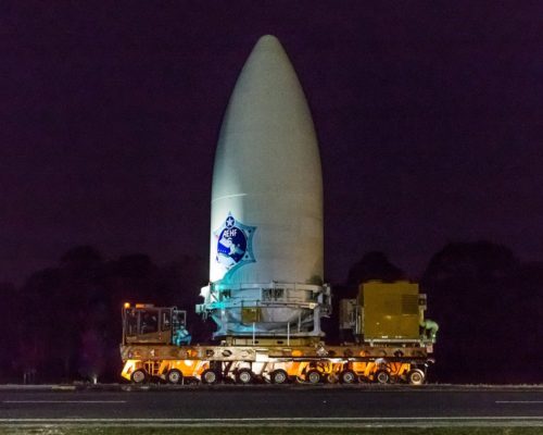 AEHF-6 encapsulated in nosecone on way to integration with the Atlas V. Credits: ULA