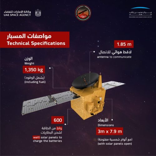 The Hope Probe will be the first probe to provide a complete picture of the Martian atmosphere and its layers when it reaches the red planet’s orbit in 2021. It will help answer key questions about the global Martian atmosphere and the loss of hydrogen and oxygen gases into space over the span of one Martian year.