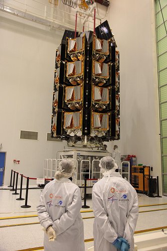 Although the launch is on a Russian rocket from the famous Baikonur Cosmodrome in Kazakhstan, the launch is considered an Arianespace operation due to the collaboration with the Euro-Russian Starsem company. Starsem also launches Soyuz rockets from the Arianespace facility in Kourou, French Guiana.