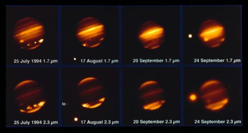 This image, taken with the MPG/ESO 2.2-metre telescope and the IRAC instrument, shows comet Shoemaker–Levy 9 impacting Jupiter in July 1994. Credits: ESO